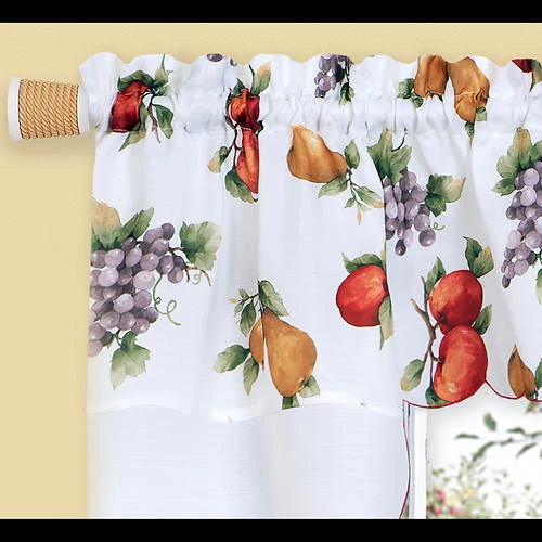 - The swag has embellished accents and scalloped edges