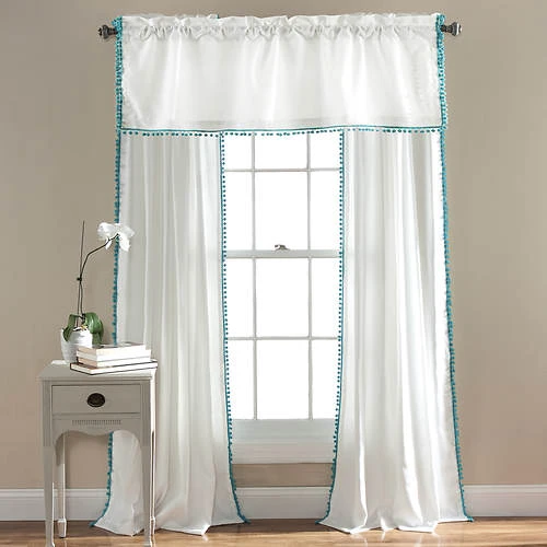 - Simple and elegant, pom pom tassels add the perfect touch of pizzazz to this solid-color window panel