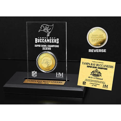 - A minted Gold-flashed Philadelphia Eagles Super Bowl Champs Coin is beautifully displayed in a 3.5″x5″ acrylic with custom team logo archival etching (engraving)