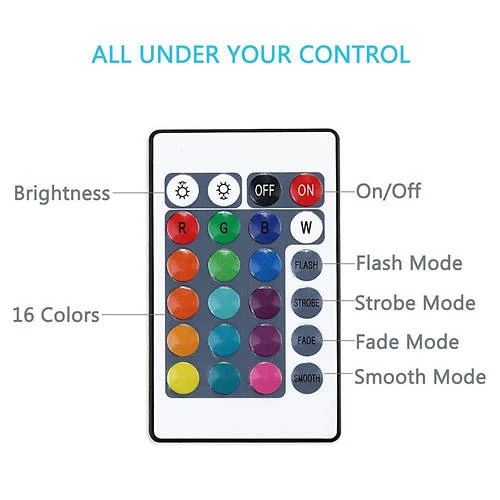 - 16 color changes with 4 different color settings that can be operated with a remote control or just by tapping it