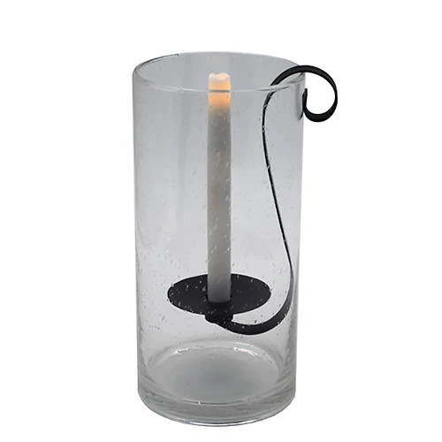 - Features a flameless taper candle suspended by an oil-rubbed bronze holder